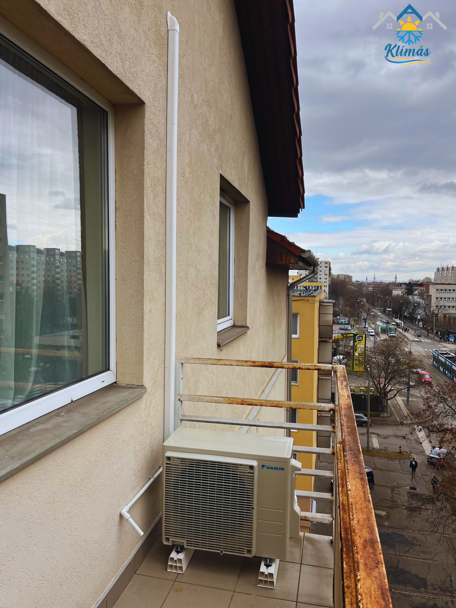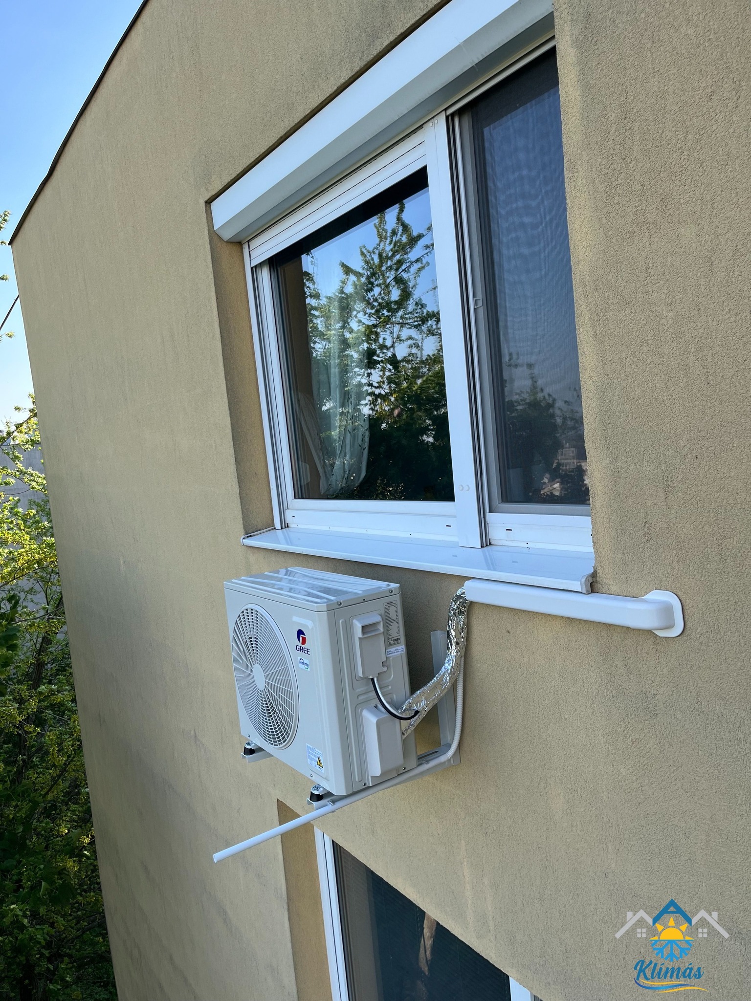 Az ablak alá elhelyezett készülékek esetében mindig a városi engedélyeknek és alapvető irányelveknek megfelelően telepítjük a berendezéseket. A kültéri egység teteje minden esetben a párkány szintjén vagy az alatt helyezkedik el. Ezáltal ügyfeleink számára kompromisszummentes a telepítés.