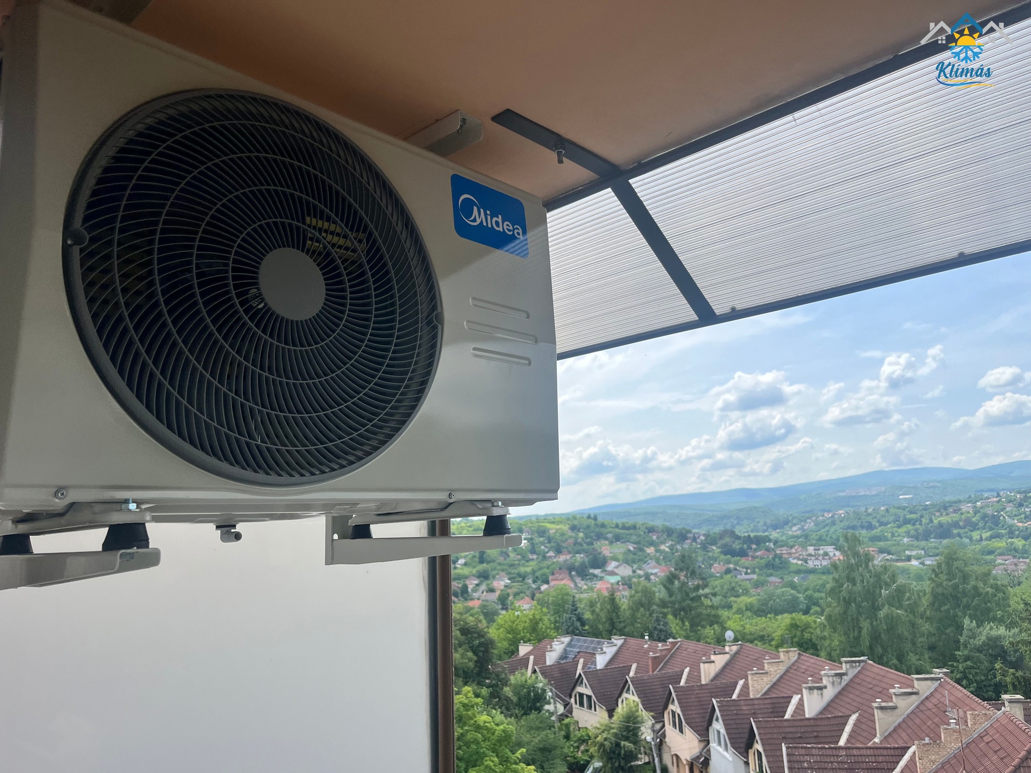 Az erkélyes elhelyezésnél általában az ügyfelek 99%-a a felső erkélyről függesztve kéri a készülék telepítését, melynek előnye, hogy az erkély hasznos alapterületéből nem veszítünk. A konzolok felszerelése után a készüléket minden esetben kiszintezzük, ezáltal esztétikusan fog kinézni, illetve ennek – és a gumibakokra való elhelyezésnek – köszönhetően halkabban is fogja végezni a dolgát.